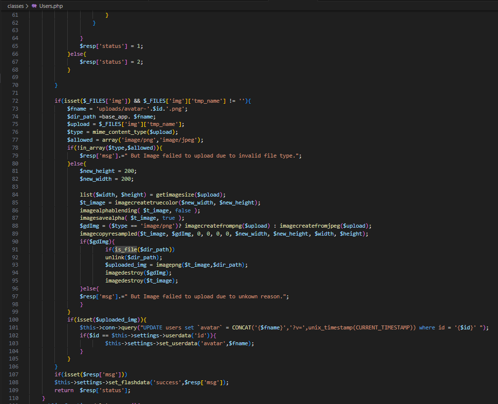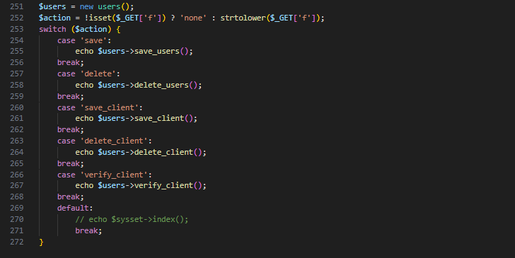 As seen in the code snippet above, requests with the parameter f=save are directly routed to the save_users function. At this point, there is no check whether the user is logged in or has administrative privileges.